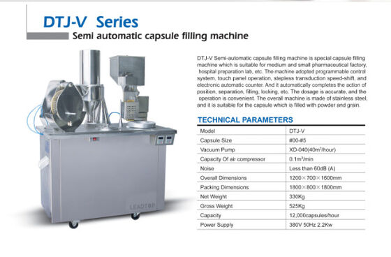 DTJ-V সেমি-অটোমেটিক ক্যাপসুল ফিলিং মেশিন পণ্যটি বিশেষ ক্যাপসুল ফিলিং মেশিন যা মাঝারি ও ছোট ফার্মাসিউটিক্যাল কারখানা, হাসপাতাল প্রস্তুতি ল্যাব, ইত্যাদির জন্য উপযুক্ত। মেশিনটি প্রোগ্রামেবল কন্ট্রোল সিস্টেম, টাচ প্যানেল অপারেশন, স্টেপলেস ট্রান্সডাকশন স্পিড-শিফ্ট, এবং ইলেকট্রনিক স্বয়ংক্রিয় কাউন্টার।এবং এটি স্বয়ংক্রিয়ভাবে অবস্থান, বিচ্ছেদ, ভর্তি, লকিং, ইত্যাদির ক্রিয়া সম্পন্ন করে। ডোজ সঠিক, এবং অপারেশনটি সুবিধাজনক।সামগ্রিক মেশিনটি স্টেইনলেস স্টিল দিয়ে তৈরি, এবং এটি ক্যাপসুলের জন্য উপযুক্ত যা পাউডার এবং শস্য দিয়ে ভরা।